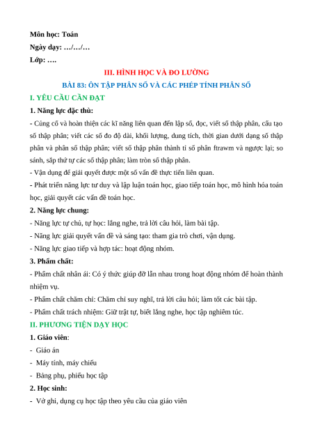cùng tìm hiểu về Bài 83: Ôn tập về phân học tập.