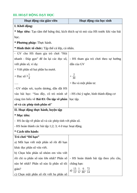 BÀI 83: ÔN TẬP PHÂN SỐ VÀ CÁC PHÉP TÍNH PHÂN SỐ