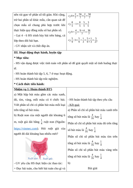 Giáo án Ôn tập về phân số và các phép tính với phân số Toán lớp 5 Cánh diều