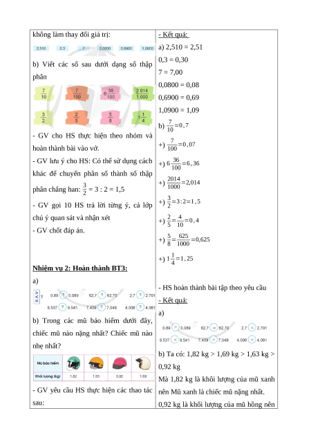 - HS ôn tập về số thập phân và các phép tính với số thập phân.