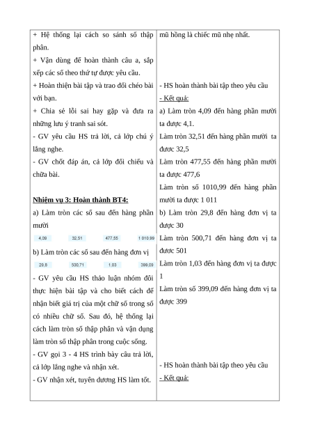 so sánh, sắp thứ tự các số thập phân; làm tròn số thập phân.