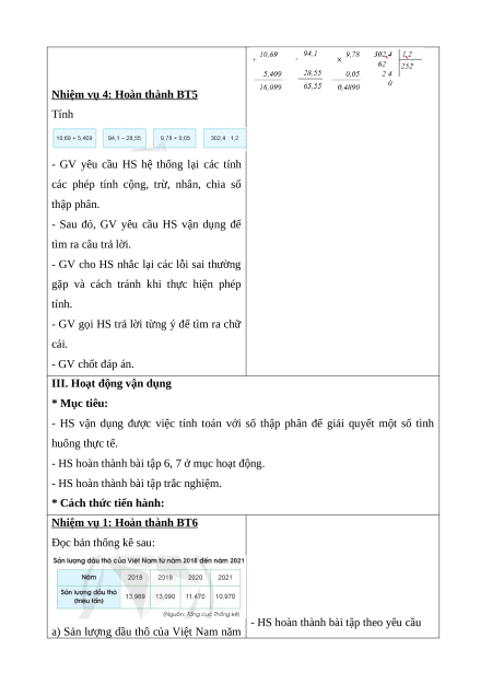 Giáo án Ôn tập về số thập phân và các phép tính với số thập phân Toán lớp 5 Cánh diều