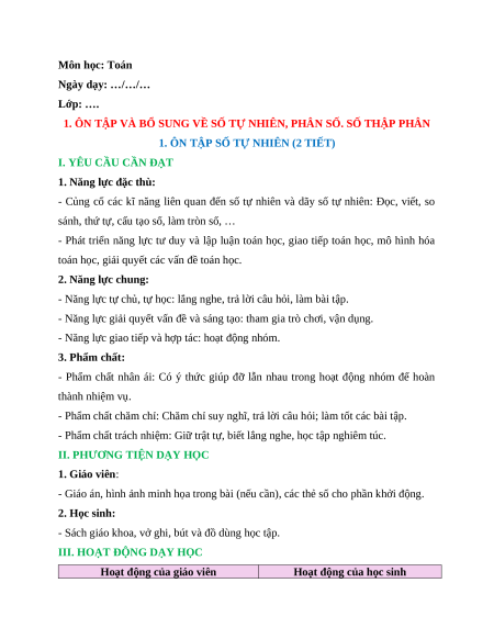 1. ÔN TẬP SỐ TỰ NHIÊN (2 TIẾT)