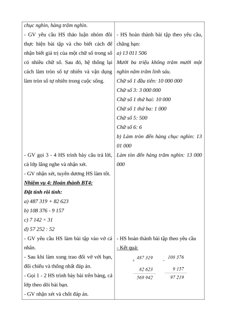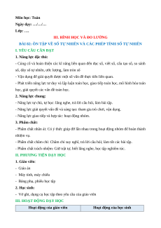- HS ôn tập về số tự nhiên và các phép tính với số tự nhiên.