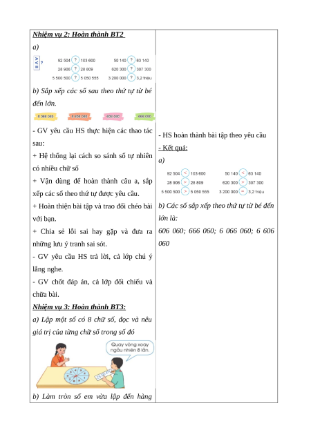 + Hệ thống lại cách so sánh số tự nhiên a) có nhiều chữ số