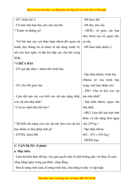 - Thực hiện cộng, trừ các số trong phạm vi 1000 và vận dụng trong tình huống thực tiễn.