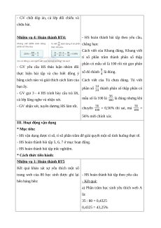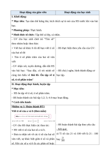 Giáo án Ôn tập về tỉ số, tỉ số phần trăm Toán lớp 5 Cánh diều