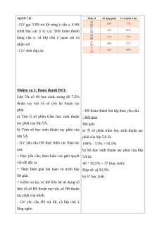 + Thực hiện giải bài toán và trình bày Đáp số: a) 92,5% lời giải. b) 37 học sinh