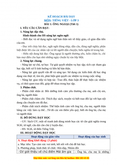 BÀI 1: ÔNG NGOẠI (Tiết 1) I. YÊU CẦU CẦN ĐẠT: