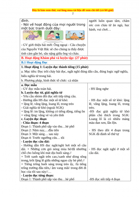 a. Mục tiêu: Hiểu nội dung bài đọc: Ông ngoại là người thương yêu, luôn chăm lo,