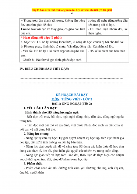 thứ trước khi đi học, ông ngoại còn đưa bạn nhỏ đi thăm trường. Câu 3: