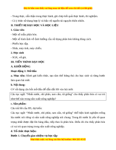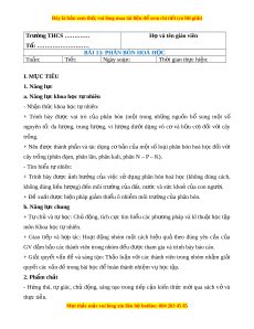 ạ , phân lân, phân kali, phân N – P – K). - Tìm hi u t ể nhi ự ên: + Trình bày đư c ợ nh ả hư ng ở c a ủ vi c ệ sử d ng ụ phân bón hoá h c ọ (không đúng cách, không đúng li u l ề ư ng) ợ đ n m ế ôi trư ng c ờ a ủ đ t ấ , nư c ớ và s c ứ kho c ẻ a con ng ủ ư i ờ . + Đ xu ề ất đư c ợ bi n pháp ệ gi m ả thi u ô nhi ể m ễ môi trư ng ờ c a phân bón. ủ b. Năng l c chung ự + T ch ự ủ và t h ự c: ọ Chủ đ ng, t ộ ích c c ự tìm hi u các ể phư ng pháp ơ và kĩ thu t ậ h c t ọ p ậ môn Khoa h c ọ t nhi ự ên. + Giao ti p ế và h p ợ tác: Ho t ạ đ ng ộ nhóm m t ộ cách hi u ệ quả theo đúng yêu c u ầ c a ủ GV đ m ả b o