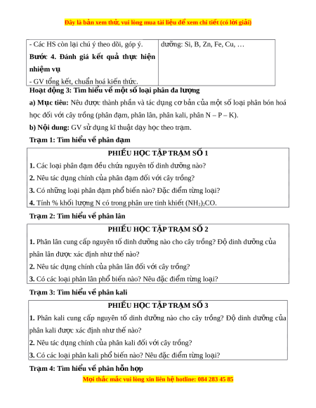 cây các nguyên tố dinh dư ng: ỡ N, P, - GV theo dõi, đôn đ c ố và hỗ trợ HS khi K. cần thi t ế . + Phân bón trung lư ng: ợ cung c p ấ Bư c ớ 3. Báo cáo k t ế quả ho t ạ đ ng