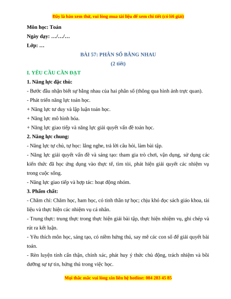 BÀI 57: PHÂN SỐ BẰNG NHAU (2 tiết)
