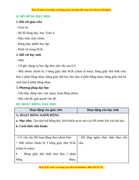 Giáo án Phân số bằng nhau Toán lớp 4 Cánh diều