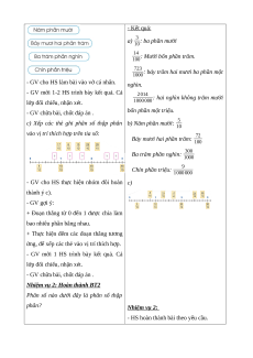 - Nhận biết về phân số thập phân, biết đọc, viết phân số thập phân.