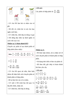 - Nhận biết phân số thập phân. * Cách tiến hành: