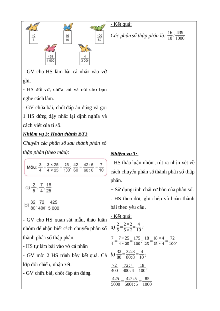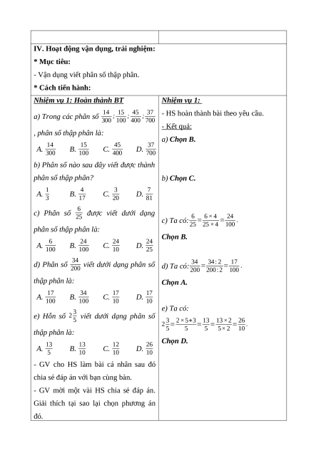 - Thực hiện viết được một phân số thành phân số thập phân.