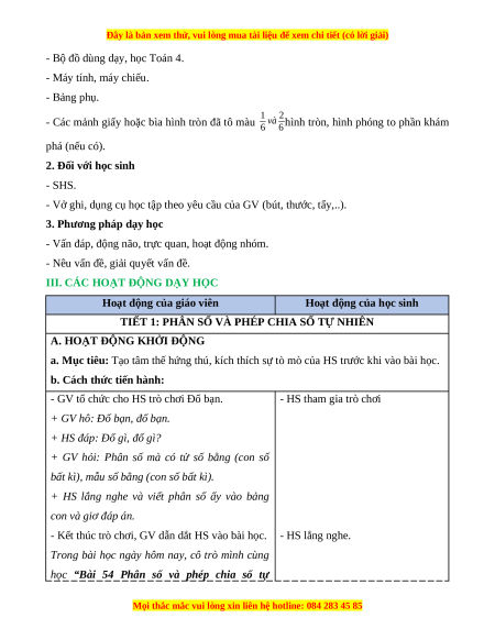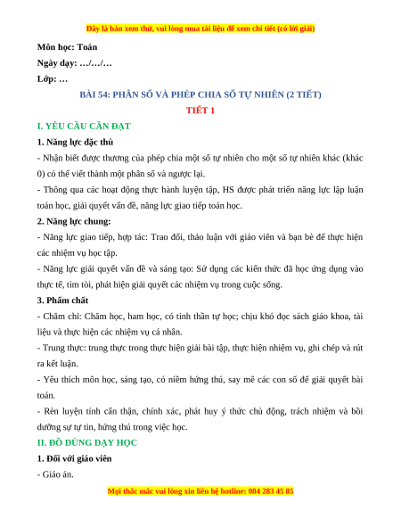 BÀI 54: PHÂN SỐ VÀ PHÉP CHIA SỐ TỰ NHIÊN (2 TIẾT) TIẾT 1