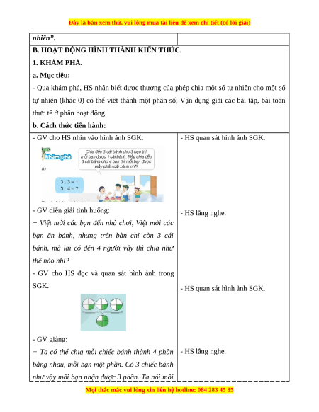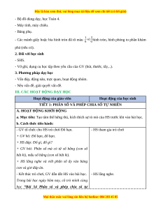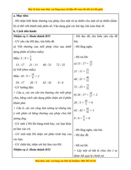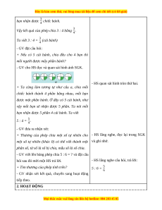 - HS nhận biết được thương của phép chia một số tự nhiên cho một số tự nhiên (khác