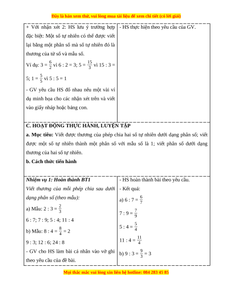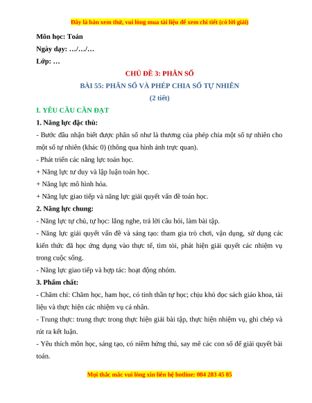 BÀI 55: PHÂN SỐ VÀ PHÉP CHIA SỐ TỰ NHIÊN (2 tiết)