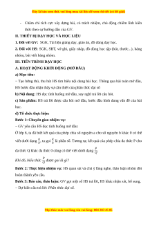 A. HOẠT ĐỘNG KHỞI ĐỘNG (MỞ ĐẦU) a) Mục tiêu: