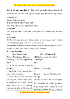 thức đại số, câu trả lời của HS cho các câu hỏi. Thực hiện được việc rút gọn phân