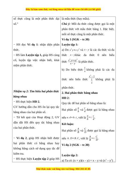 của phân thức, nhận biết được hai phân thức bằng nhau,...