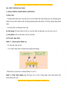 A. HOẠT ĐỘNG KHỞI ĐỘNG (MỞ ĐẦU) a) Mục tiêu: