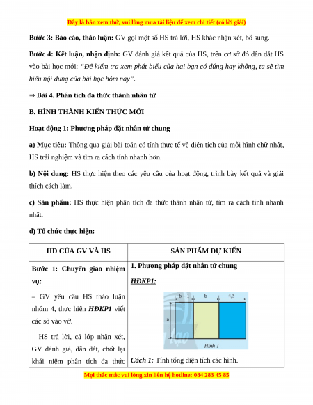 Giáo án Phân tích đa thức thành nhân tử Toán 8 Chân trời sáng tạo