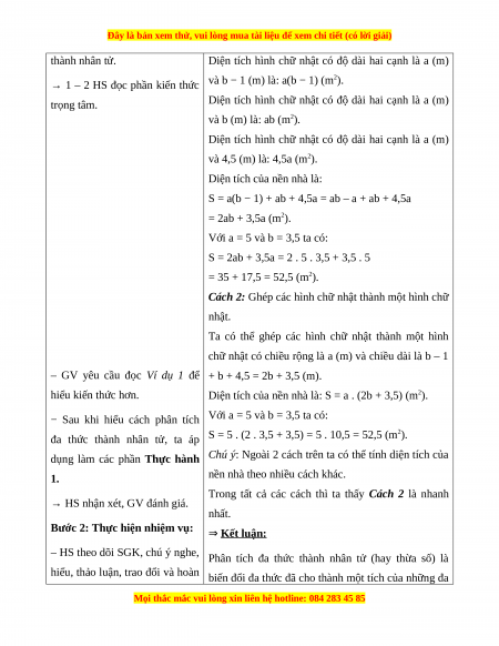 khái niệm phân tích đa thức Cách 1: Tính tổng diện tích các hình.