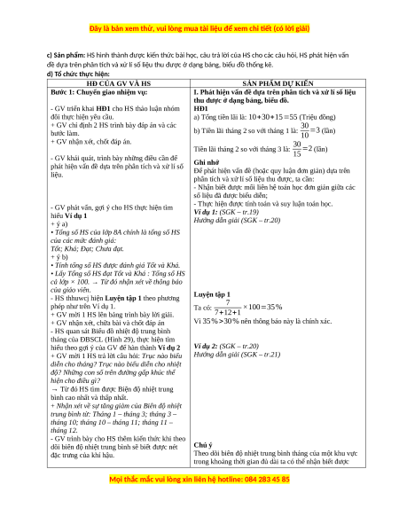 Hoạt động 2: Giải quyết những vấn đề đơn giản dựa trên phân ]ch và xử lí dữ liệu thu được ở dạng