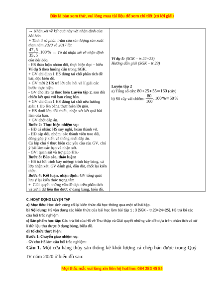 - HS thhuwcj hiện Luyện tập 1 theo phương Luyện tập 1 phép như trên Ví dụ 1. 7 Ta có: ×100=35 %