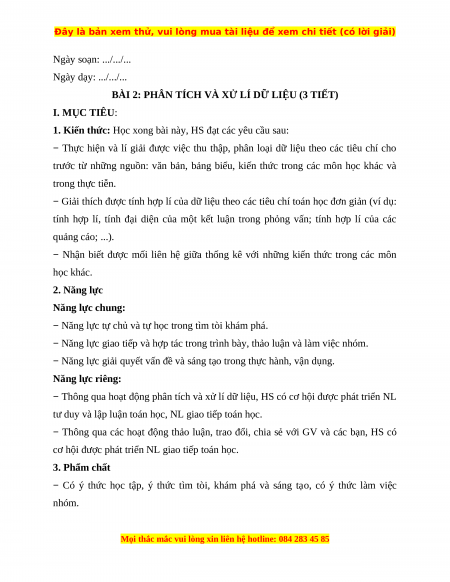 BÀI 2: PHÂN TÍCH VÀ XỬ LÍ DỮ LIỆU (3 TIẾT) I. MỤC TIÊU: