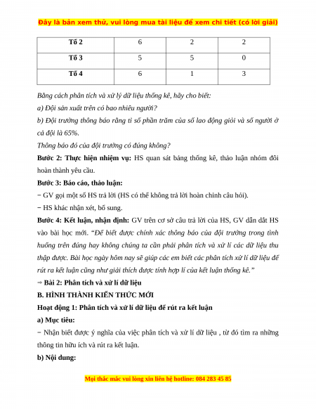 BÀI 2: PHÂN TÍCH VÀ XỬ LÍ DỮ LIỆU (3 TIẾT)