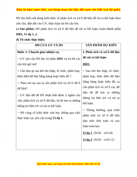 c) Sản phẩm: HS phân tích và xử lí dữ liệu để rút ra kết luận, hoàn thành phần HĐ1, Ví dụ 1, 2.