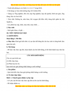 + Dụng cụ: Ống nghiệm, đèn cồn, kẹp ống nghiệm, kẹp sắt (panh), bình tam giác, ống