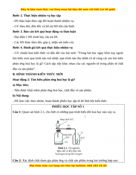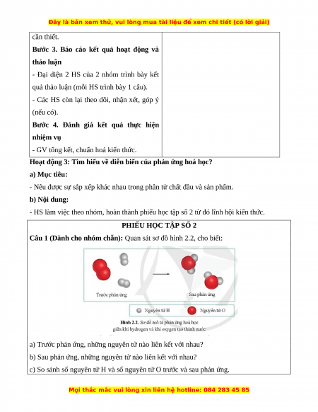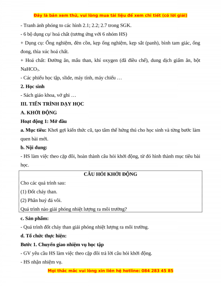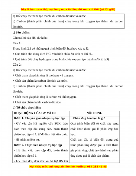 - Nêu được khái niệm phản ứng hoá học, chất đầu và sản phẩm. b) Nội dung: