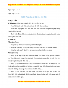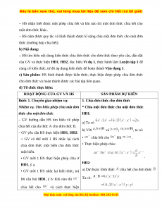 – Thực hiện được phép tính chia đa thức cho đơn thức trong trường hợp phép chia là phép chia hết. 2. Năng lực
