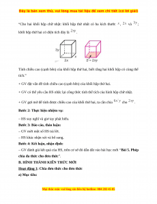 + GV có thể yêu cầu HS nhắc lại công thức tính thể tích của hình hộp chữ nhật.