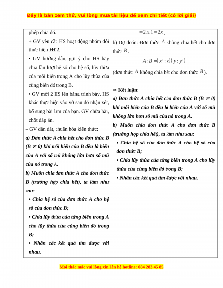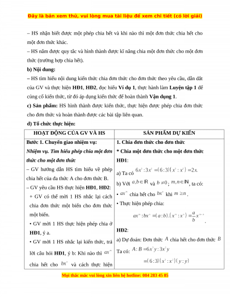 – Nhận biết được một phép chia hết của đa thức cho đơn thức.
