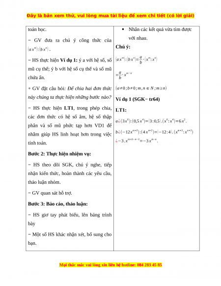 − GV đưa ra chú ý công thức của với nhau. Chú ý: (a xm) :(b xn) . a