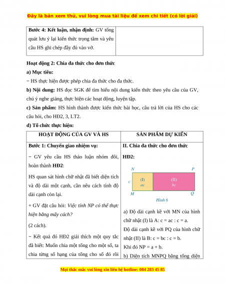 Giáo án Phép chia đa thức một biến Toán 7 Cánh diều