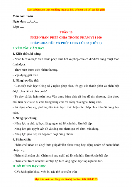 PHÉP CHIA HẾT VÀ PHÉP CHIA CÓ DƯ (TIẾT 1)