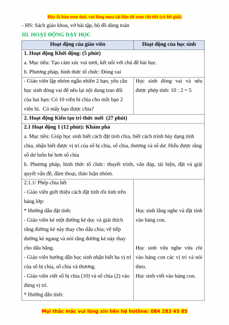 quyết vấn đề, đàm thoại, thảo luận nhóm. 2.1.1/ Phép chia hết