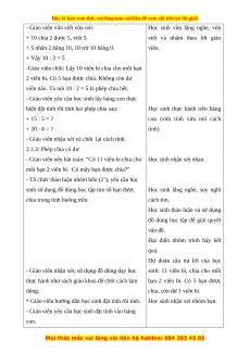 - Giao tiếp toán học: Củng cố ý nghĩa phép chia, tên gọi các thành phần và phân biệt