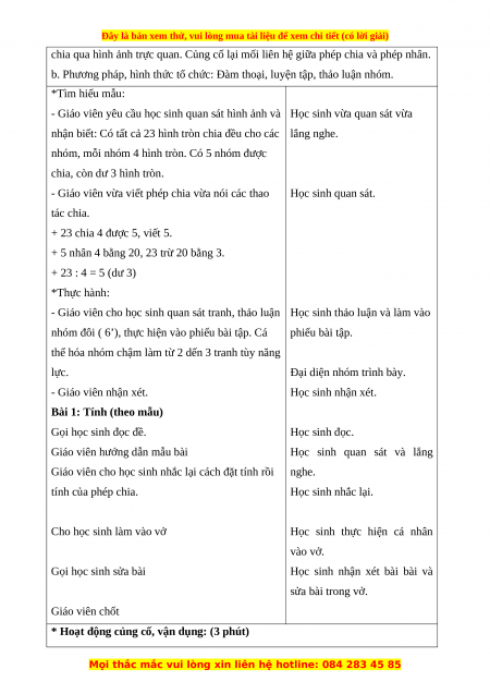 - Giáo viên nhận xét và chốt lại cách tính. 2.1.2/ Phép chia có dư