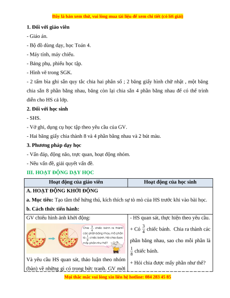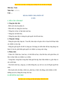 Giáo án Phép chia phân số Toán lớp 4 Cánh diều