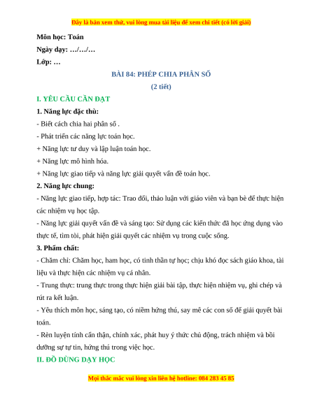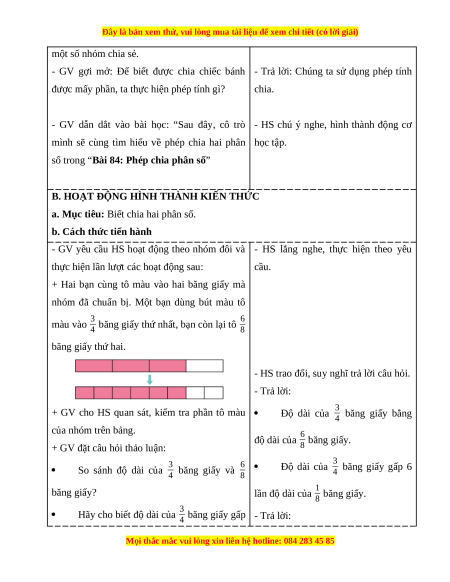 BÀI 84: PHÉP CHIA PHÂN SỐ (2 tiết)