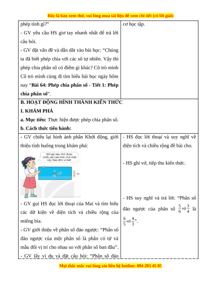 nay “Bài 64: Phép chia phân số - Tiết 1: Phép chia phân số”.